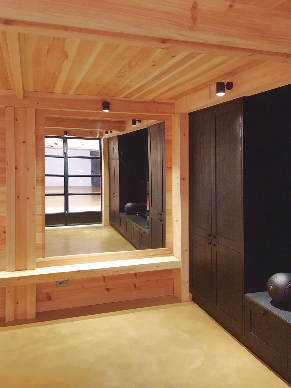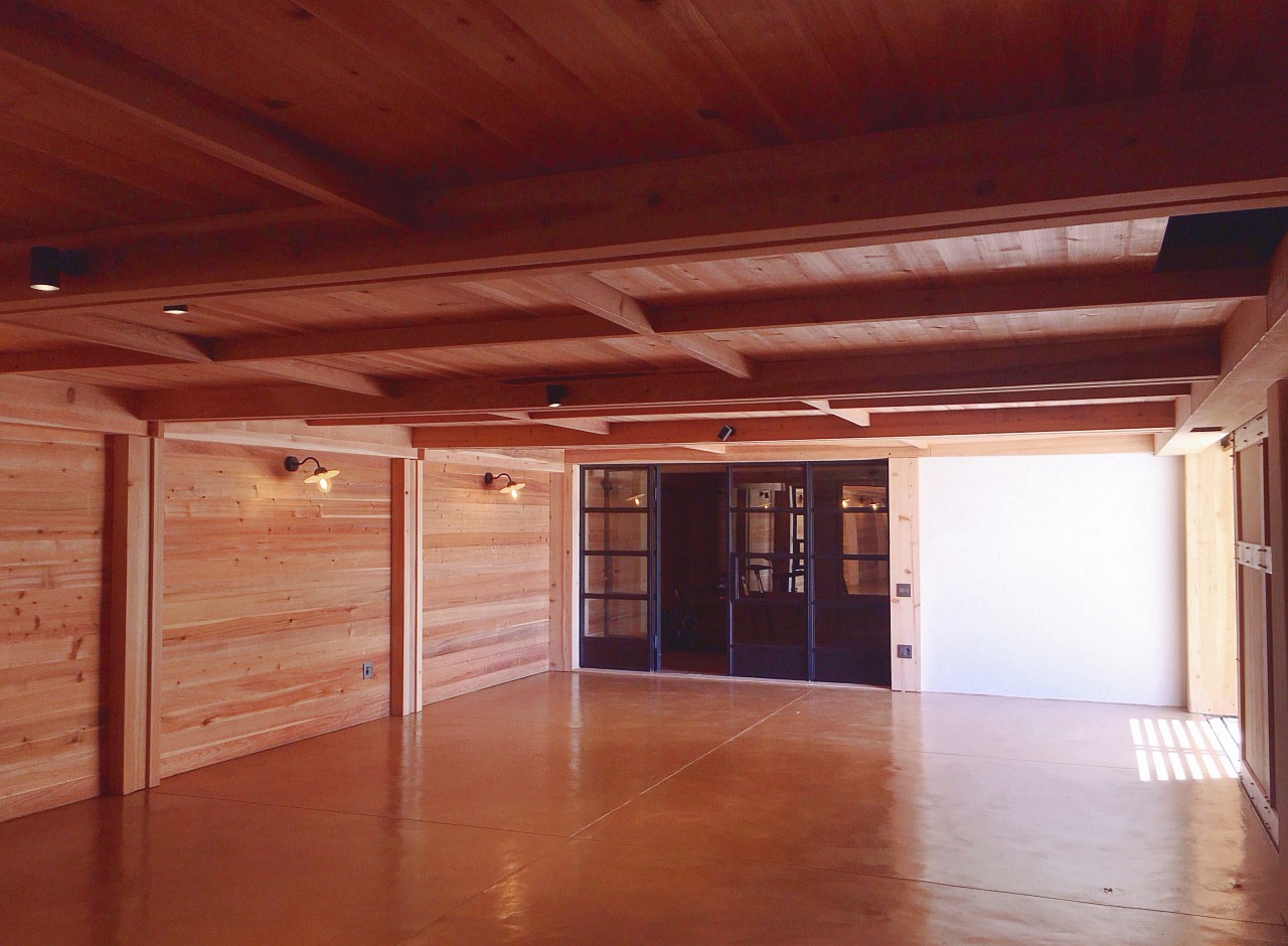 there is a small sitting area at the end of the studio barn that opens onto the gazebo court.