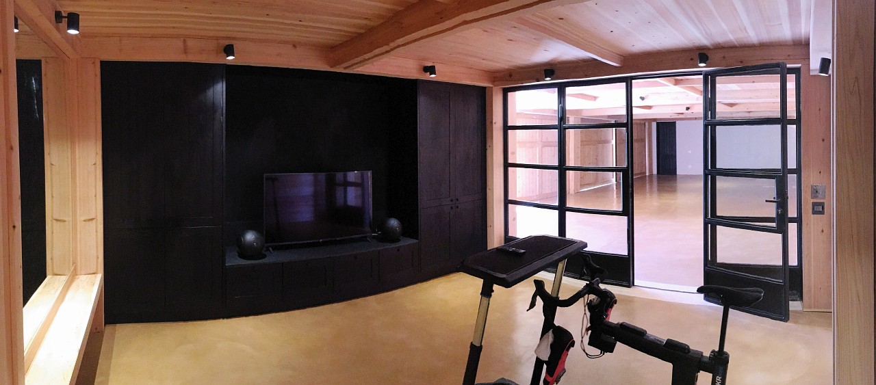the interior of the green house is designed for heavy saturation, with a misting system in the roof structure, floor drains + exterior grade electrical fittings.