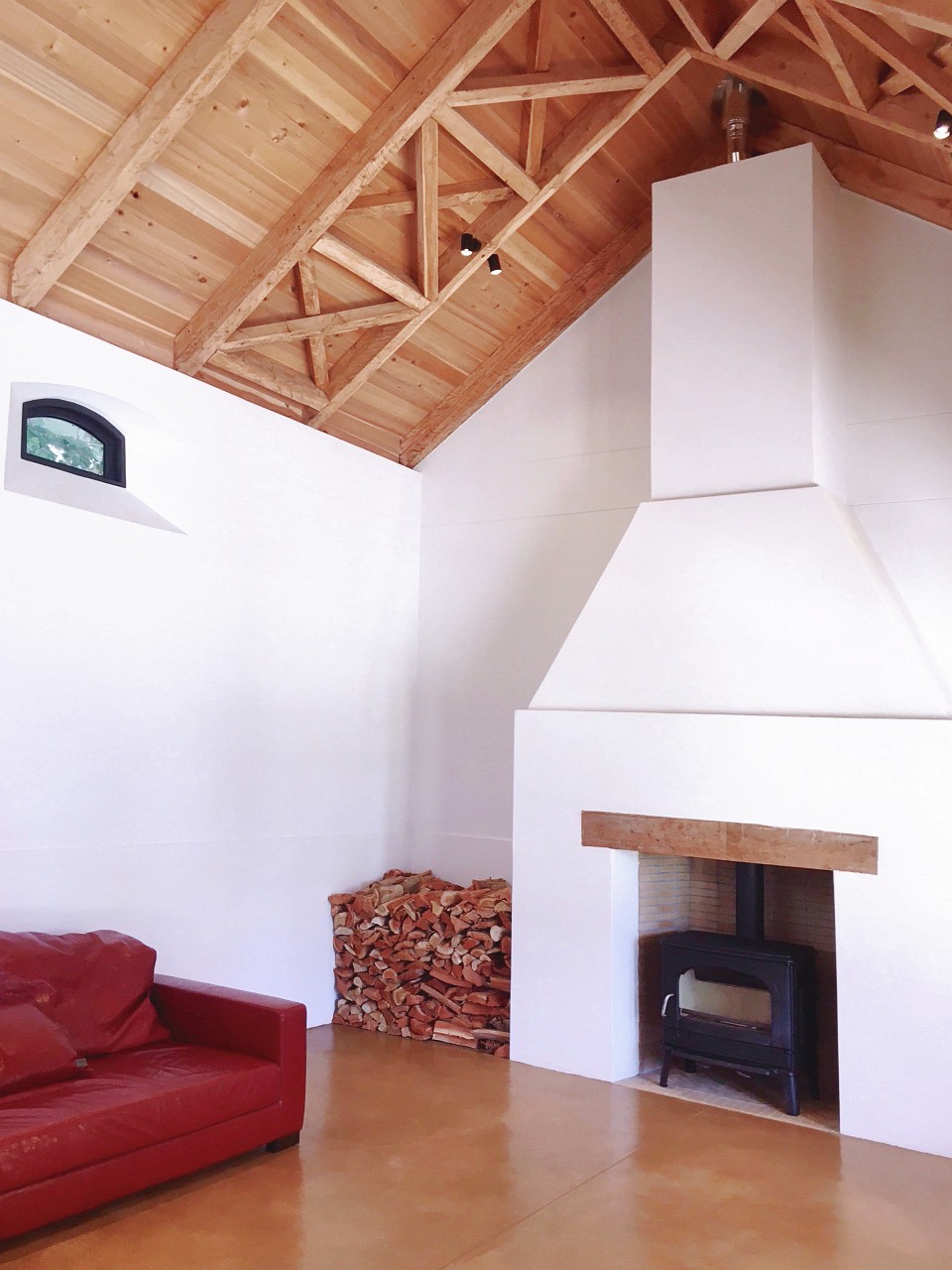 it has a closed combustion stove inside a more traditional local vernacular hearth.