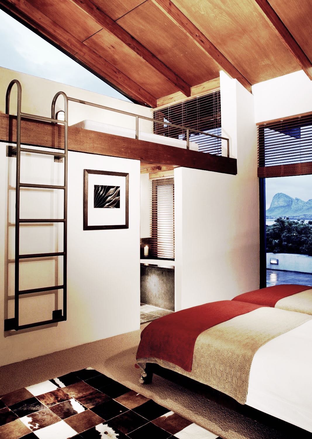 the small rim-flow pool faces the sea + is accessible from both living + sleeping areas