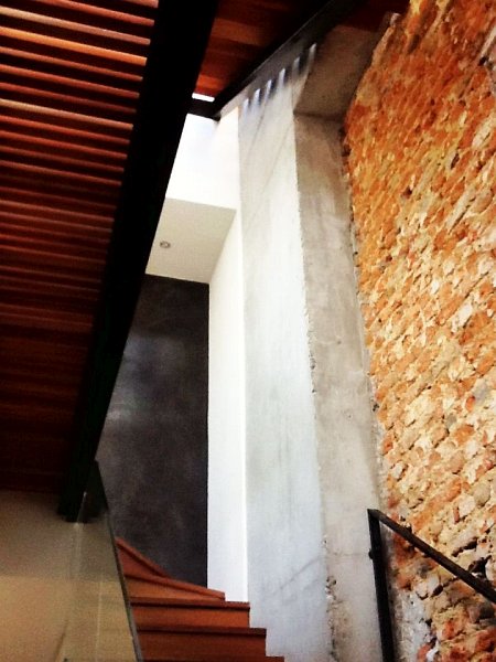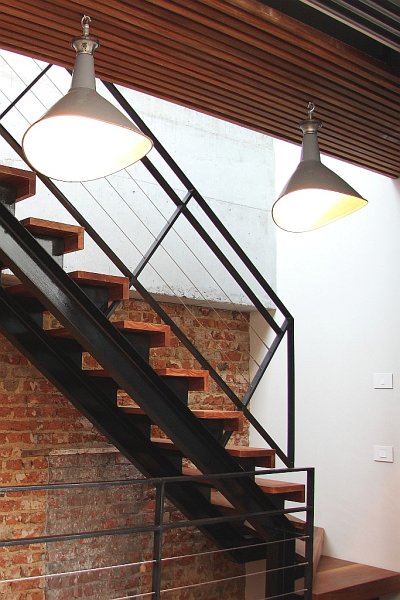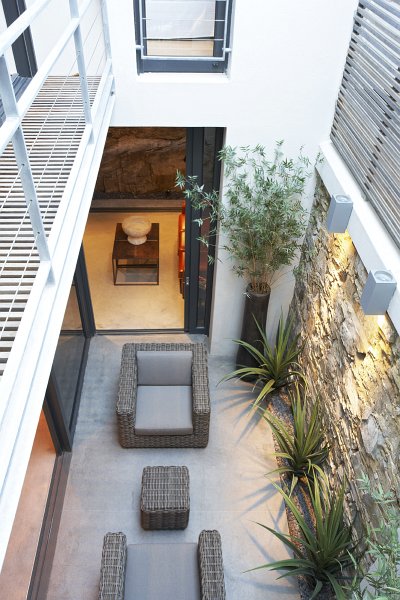 the court/light well has a shading / privacy / security screen above so that doors can be left open day + night in summer